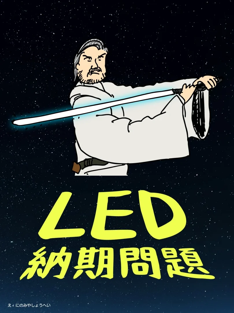 前回も話しましたが、LED照明の納期は本当に深刻です。事務所で使う逆富士型のライトバーは、施設のLED化が一気に進んで、納期未定や4ヶ月以上待ちが当たり前になっています。
